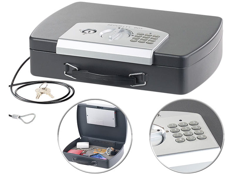 Teraz możesz mieć swój osobisty przenośny sejf. W tej kastece bezpiecznie przechowasz wszystkie cenne rzeczy, np. pieniądze, dokumenty, biżuterię czy klucze. Jest tak dostosowana, żeby zmieściły się w niej dokumenty w formacie A4 bez potrzeby składania. Zamek jest elektroniczny i możesz ustawić swój osobisty kod od 3 do 8 cyfr. W razie wyładowanej baterii zapali się czerwona dioda LED, a jeśli zapomnisz kodu, sejf możesz otworzyć kluczem awaryjnym.